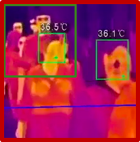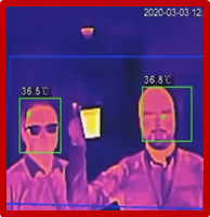Capture automatiquement l’ identité de la personne grâce à la reconnaissance faciale via NVR. Surveillance automatique de la température sans contact personnel. Alertes en direct sur l’application mobile et l’enregistreur, avec enregistrement automatique des températures dépassant la limite définie par l’opérateur. Surveille plusieurs personnes Dépistage rapide à longue distance jusqu’à 15 pieds. La détection des visages permet de surveiller plusieurs déclencheurs en vue de leur identification. Surveille jusqu’à 30 personnes / seconde , beaucoup plus rapidement que les solutions portables sans crainte de contamination croisée. Pas de pose pour la caméra requise ou retrait d’accessoires tels qu’un masque facial. Captures d’écran de séquences thermiques réelles